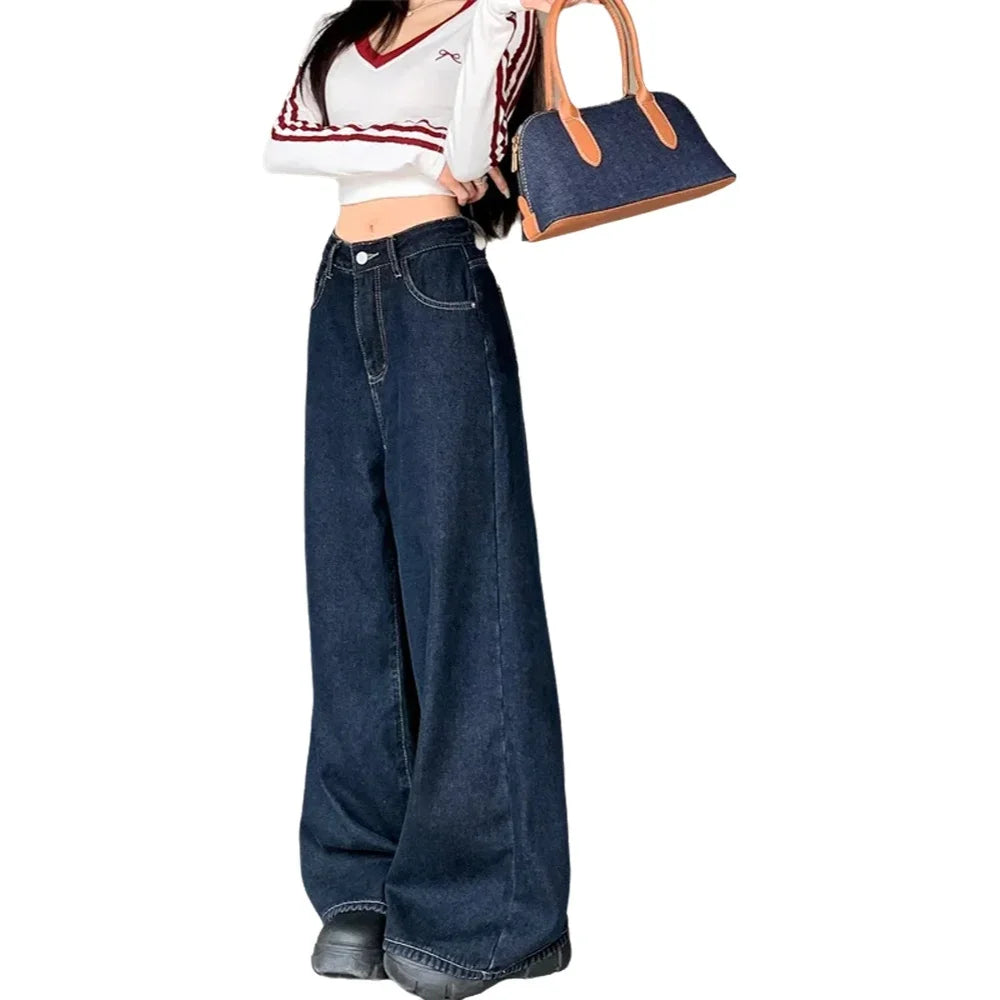 Type of merchandise:Versatile Navy Flannel-Lined Denim Pants Loose Straight Leg Drag Length Warm Trousers