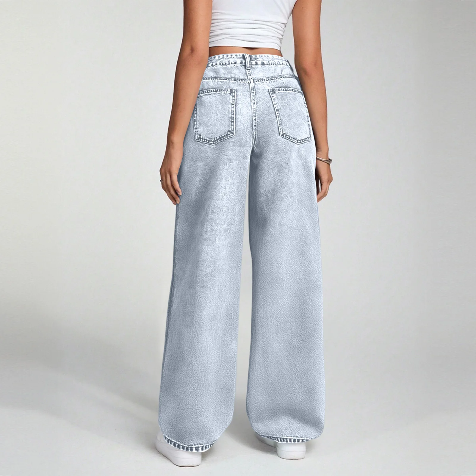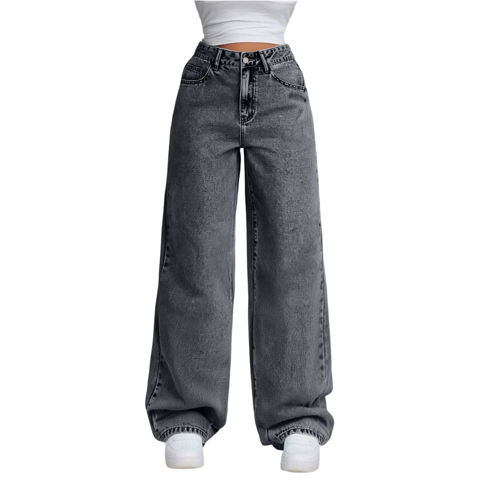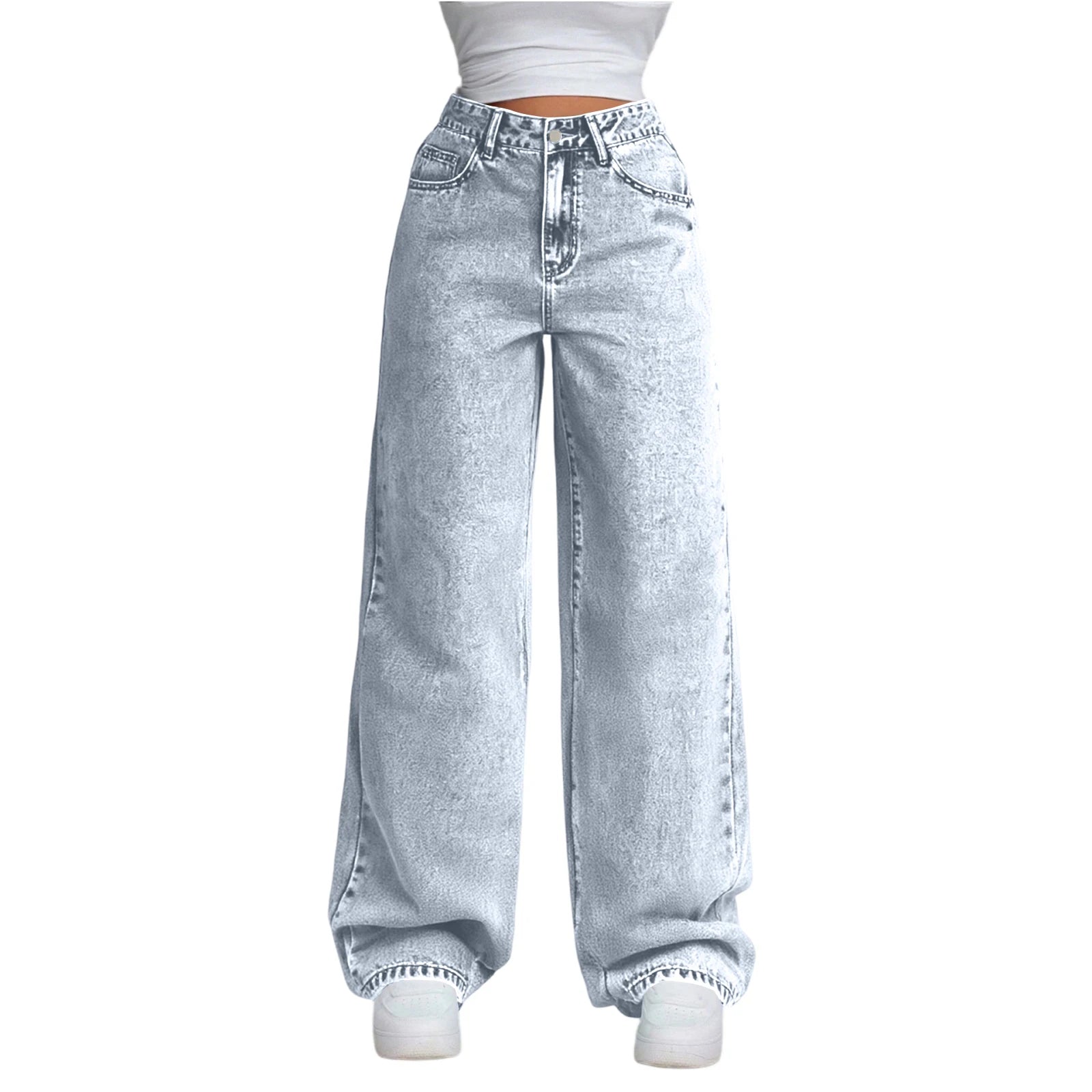 Ladies High Waisted Straight Leg Pants Fashionable Loose Casual Wide Leg Pants Comfortable Jeans Suitable For Daily Wear