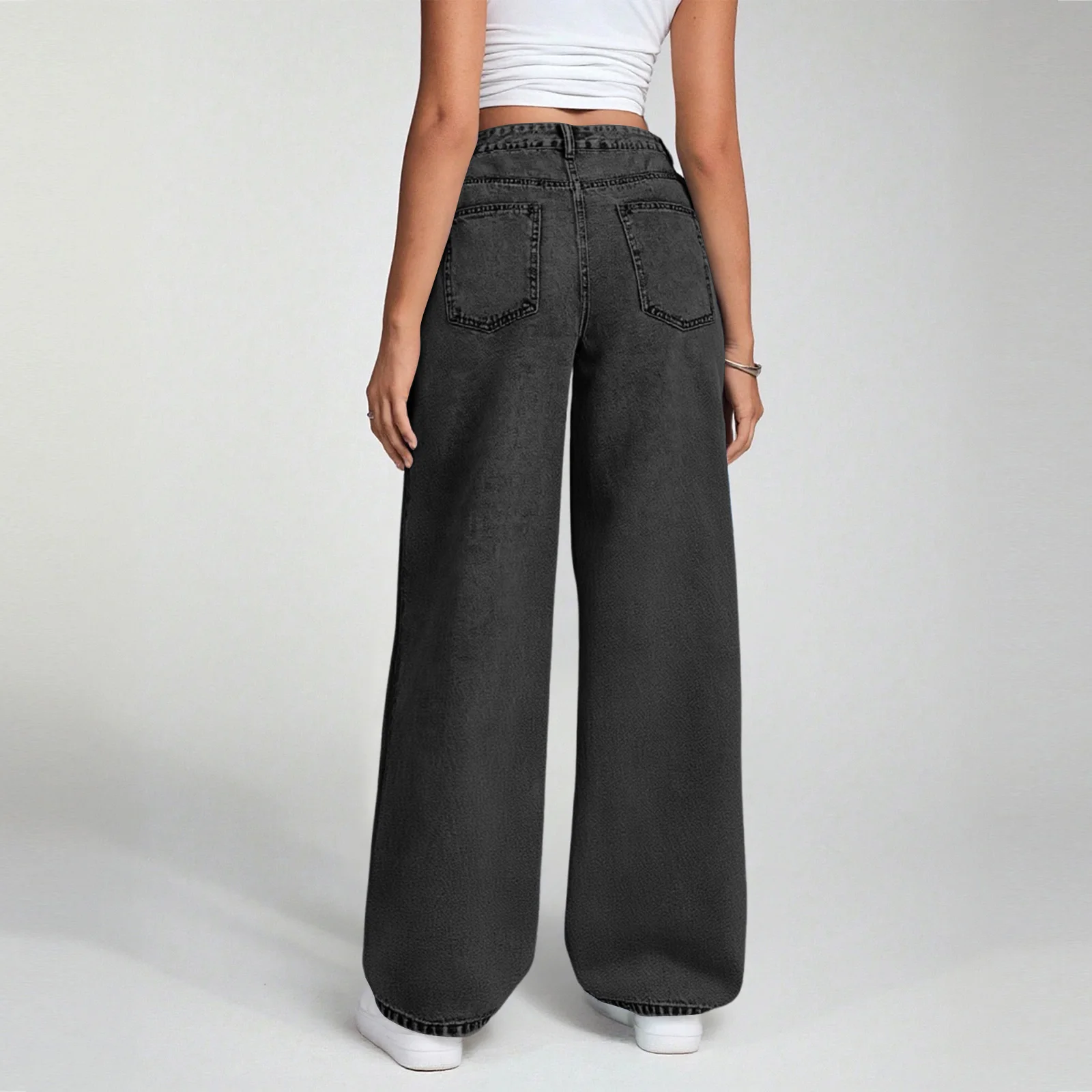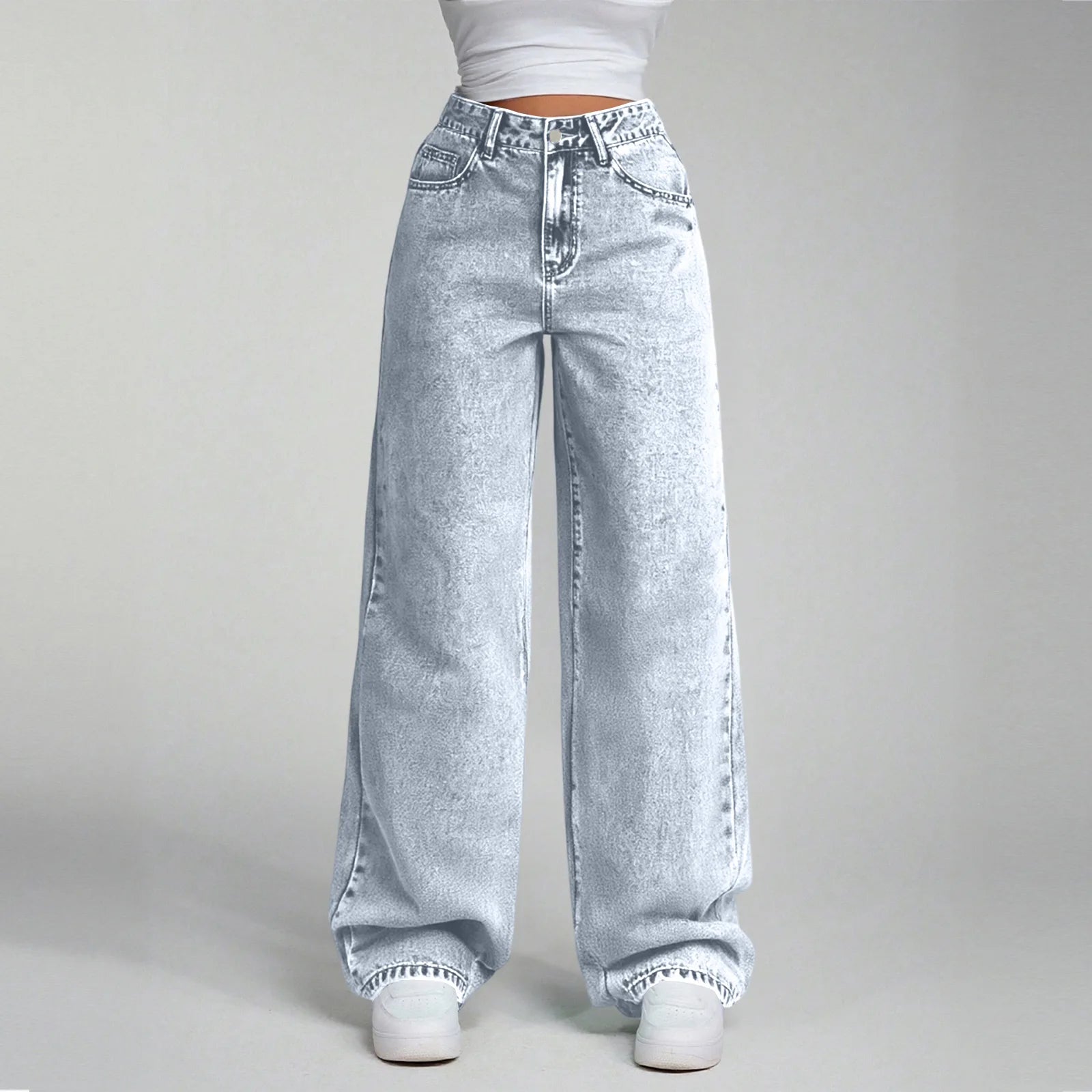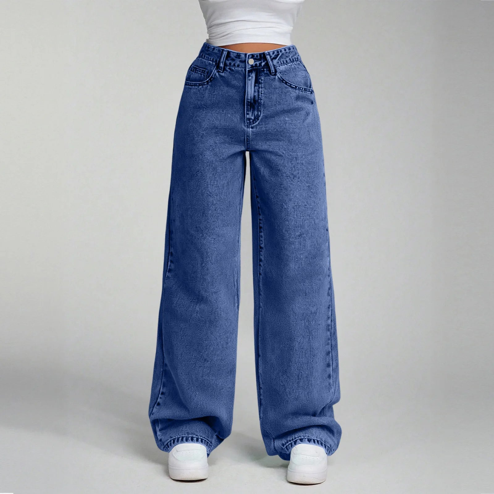 Ladies High Waisted Straight Leg Pants Fashionable Loose Casual Wide Leg Pants Comfortable Jeans Suitable For Daily Wear