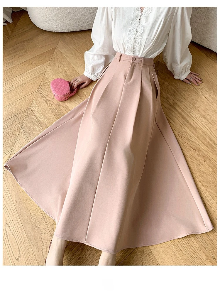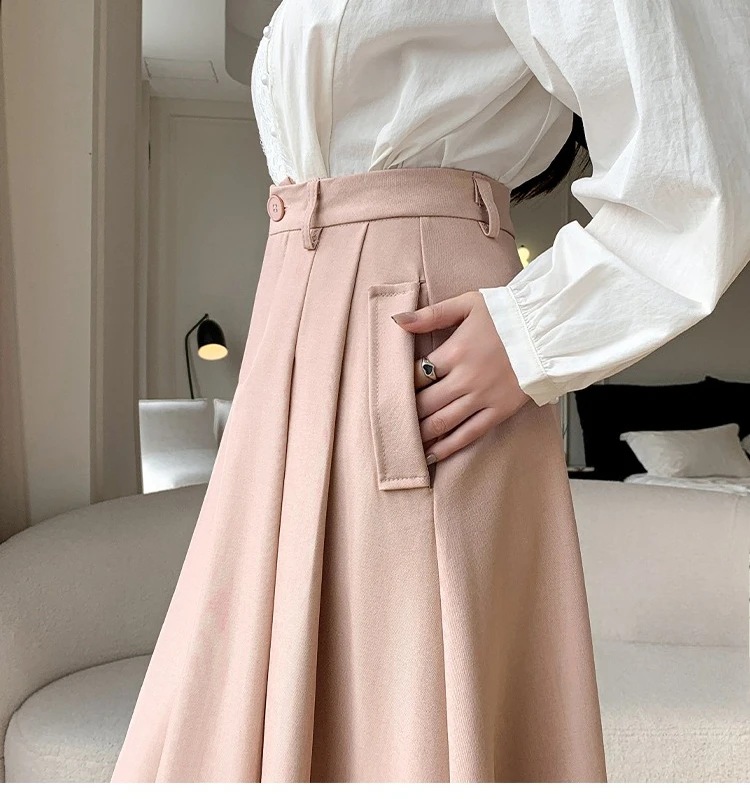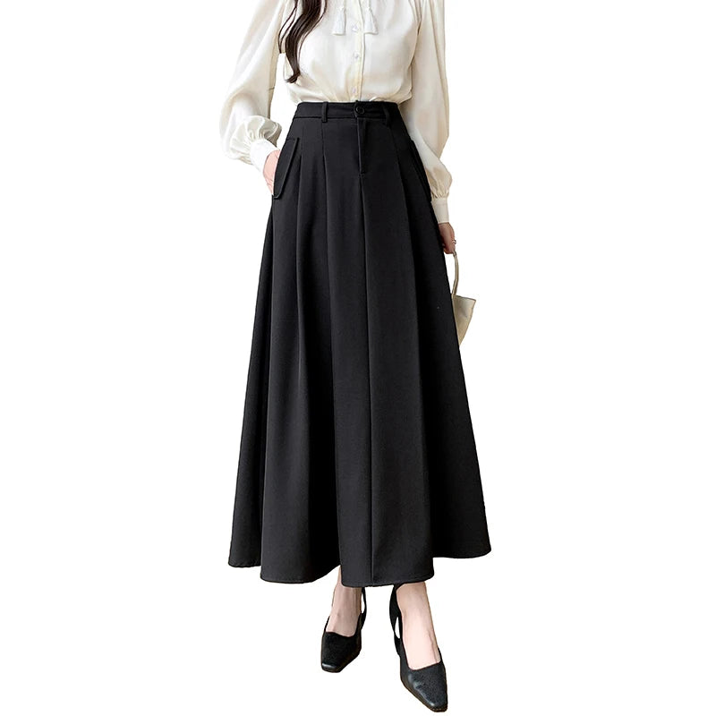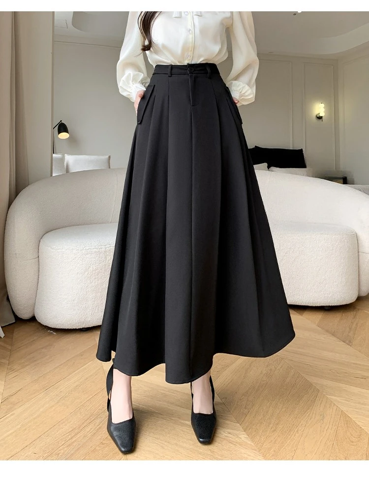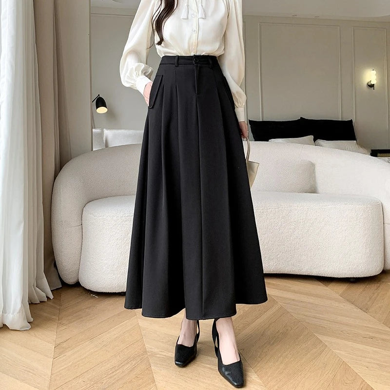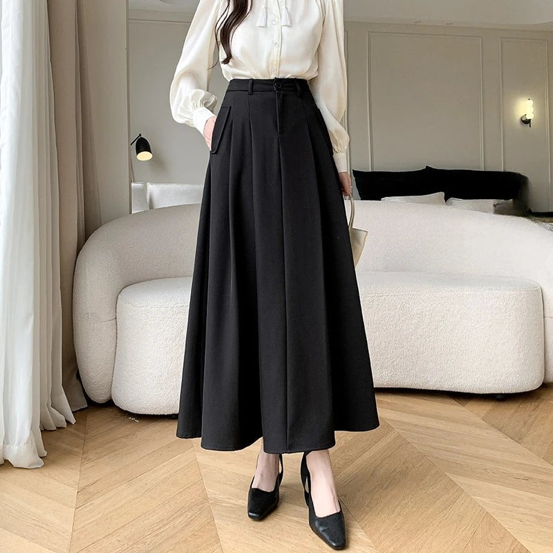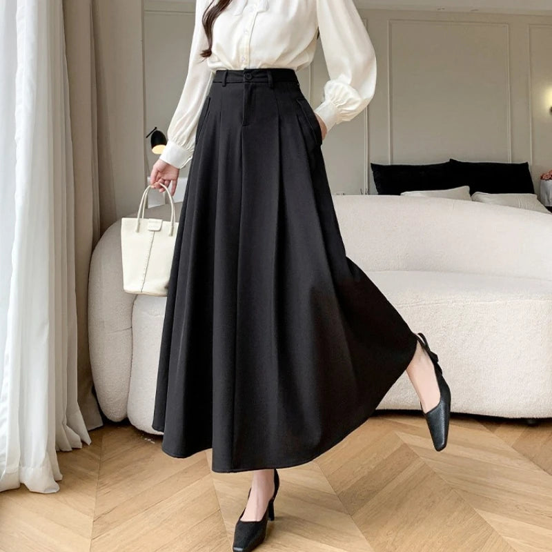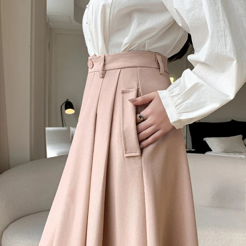 Seoulish Elegant Loose Women's Umbrella Skirts Spring Summer High Waist Solid Button A-line Skirts Pockets Female 2025 New