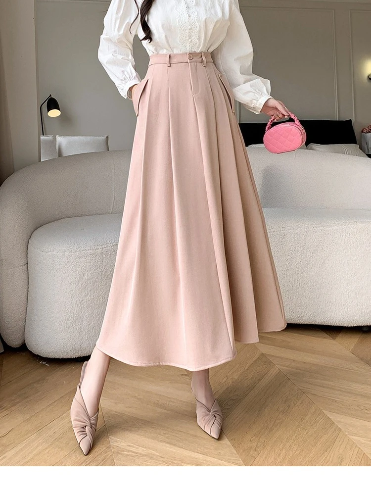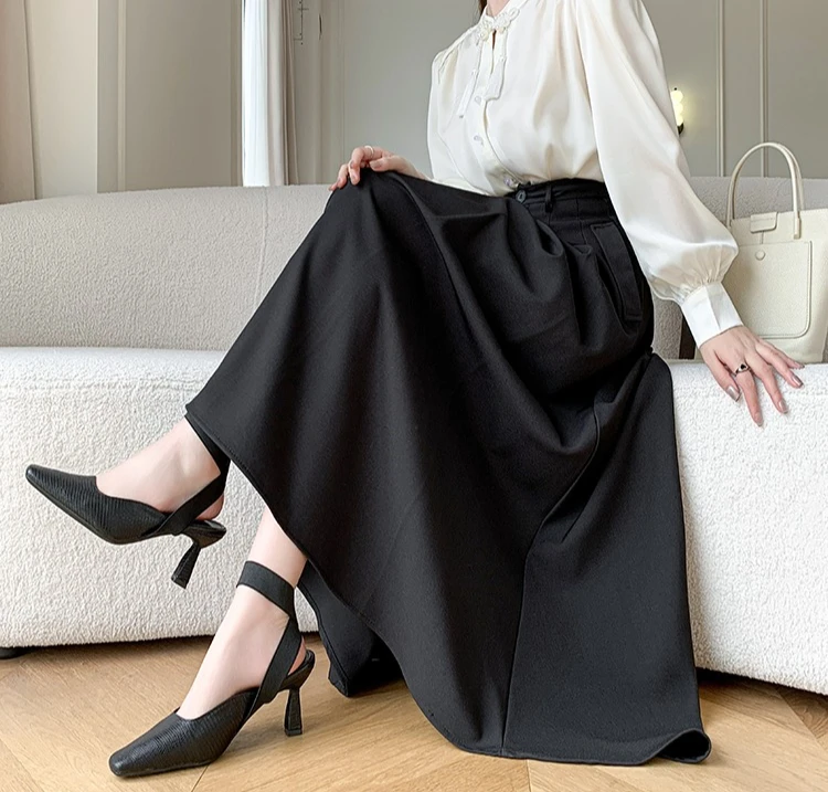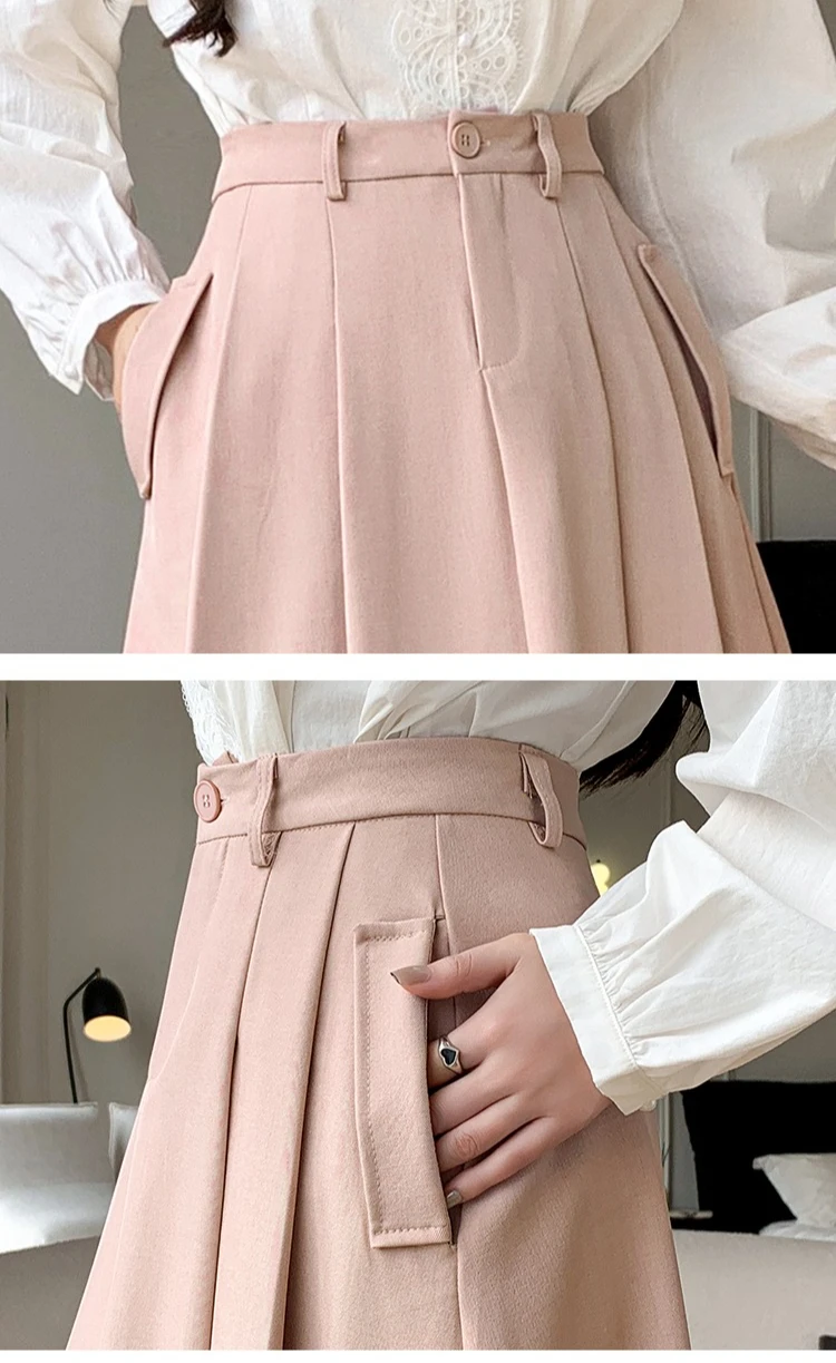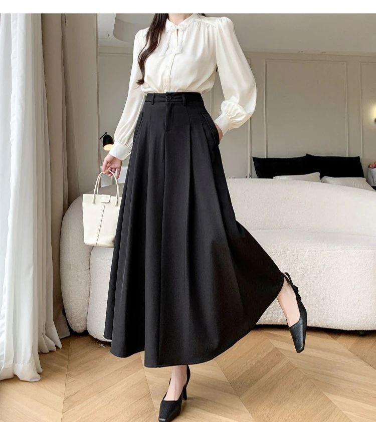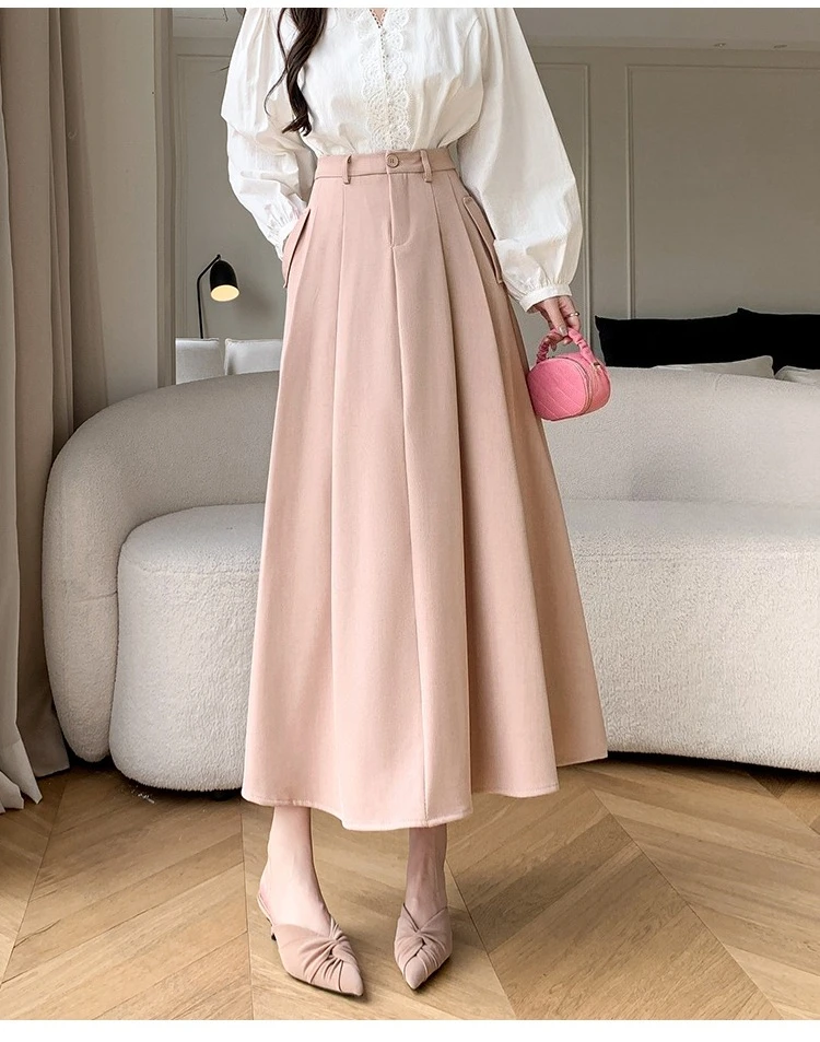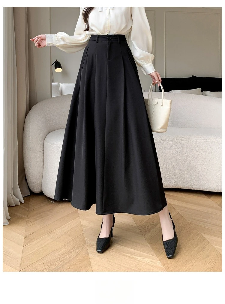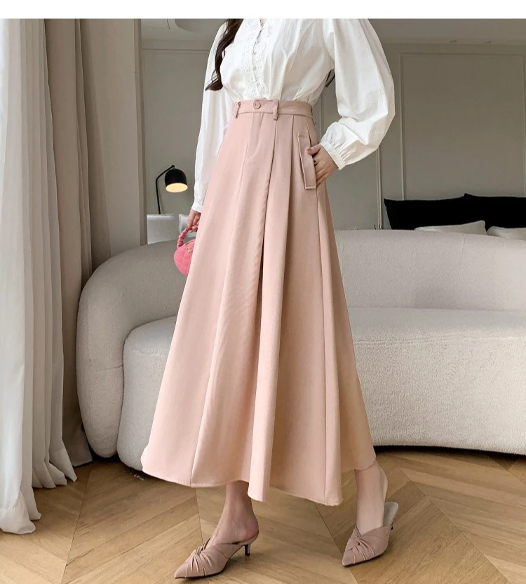 Seoulish Elegant Loose Women's Umbrella Skirts Spring Summer High Waist Solid Button A-line Skirts Pockets Female 2025 New