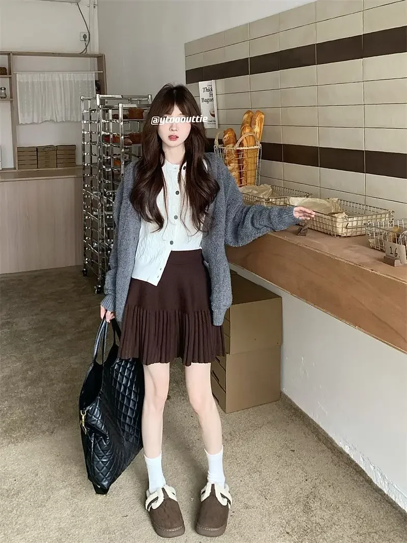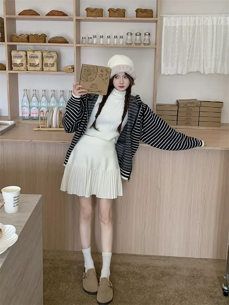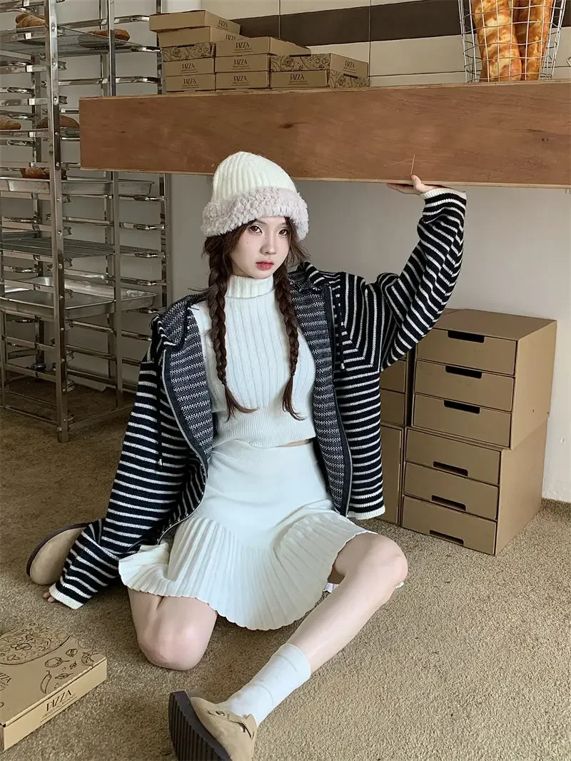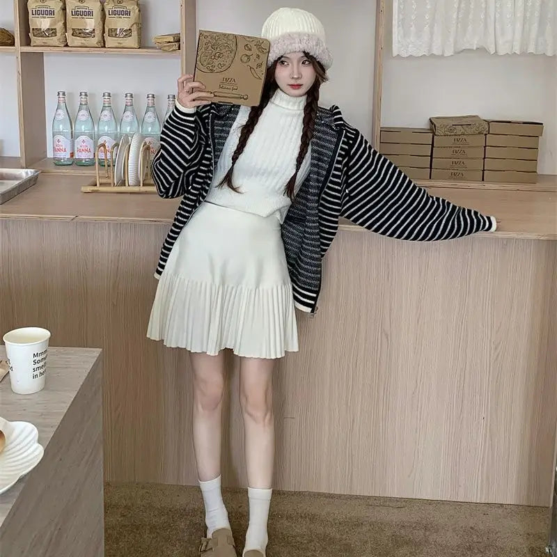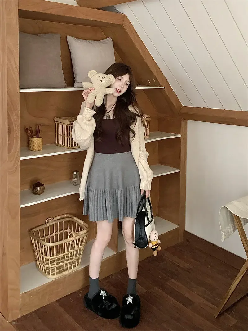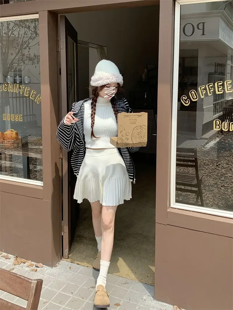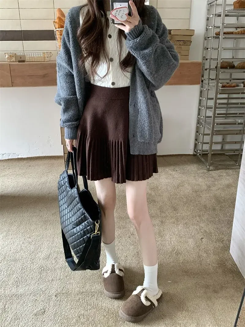 Short skirt knitted half skirt for women in autumn high waisted small A-line pleated skirt design black