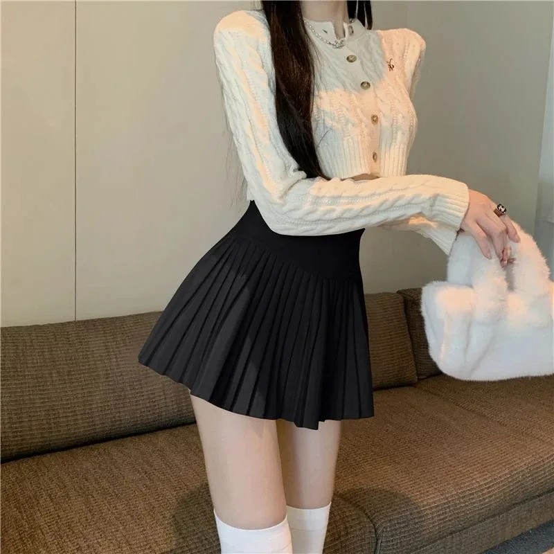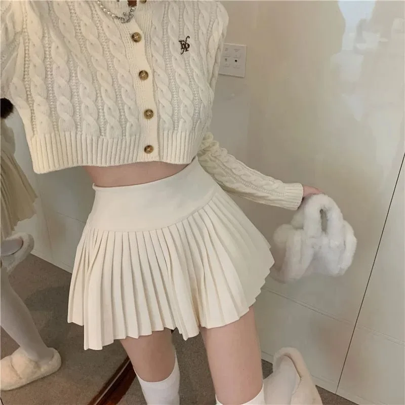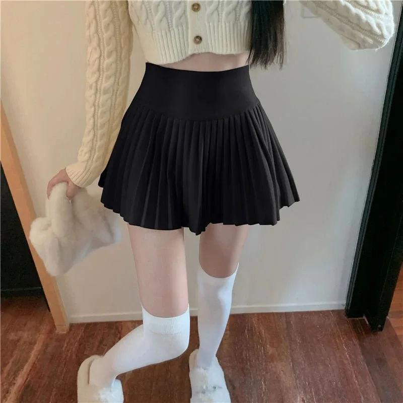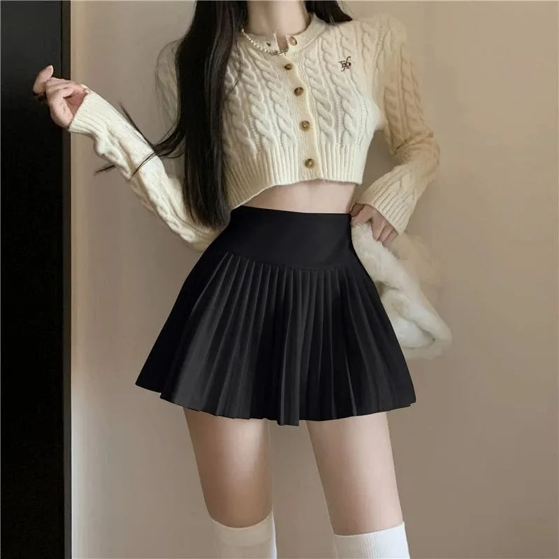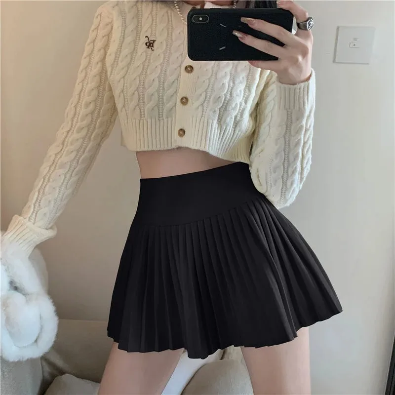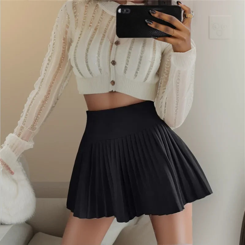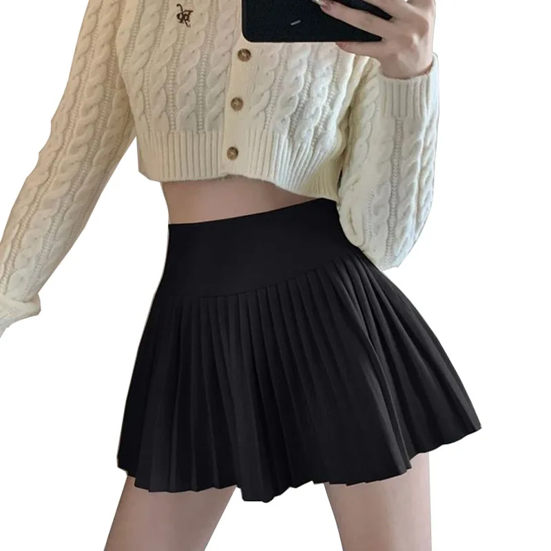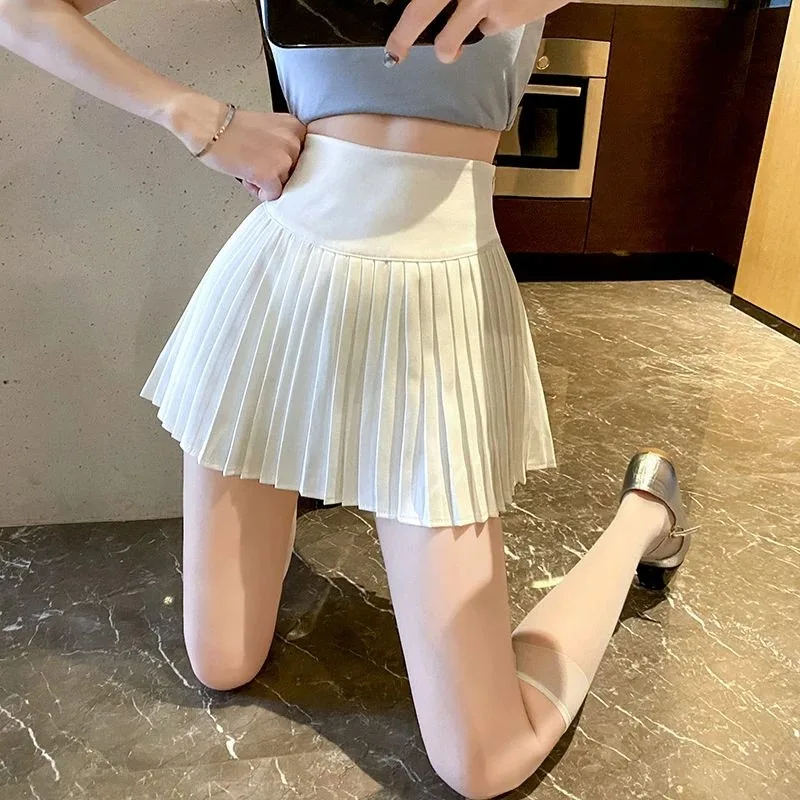 Summer High Waist Womens Sexy Mini Skirts Side Zipper Vintage Pleated Skirt Korean Student White Tennis Skirts Short Black