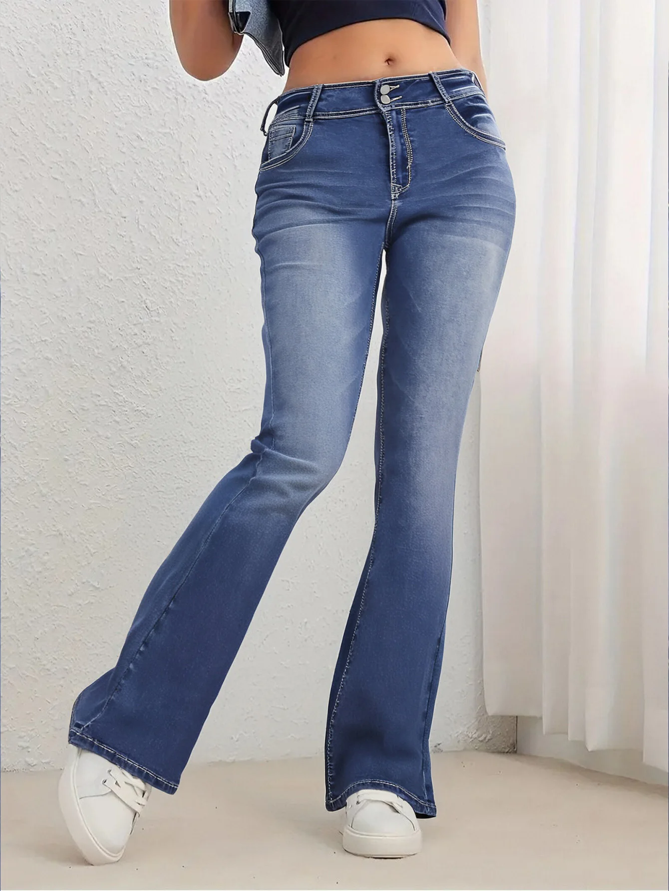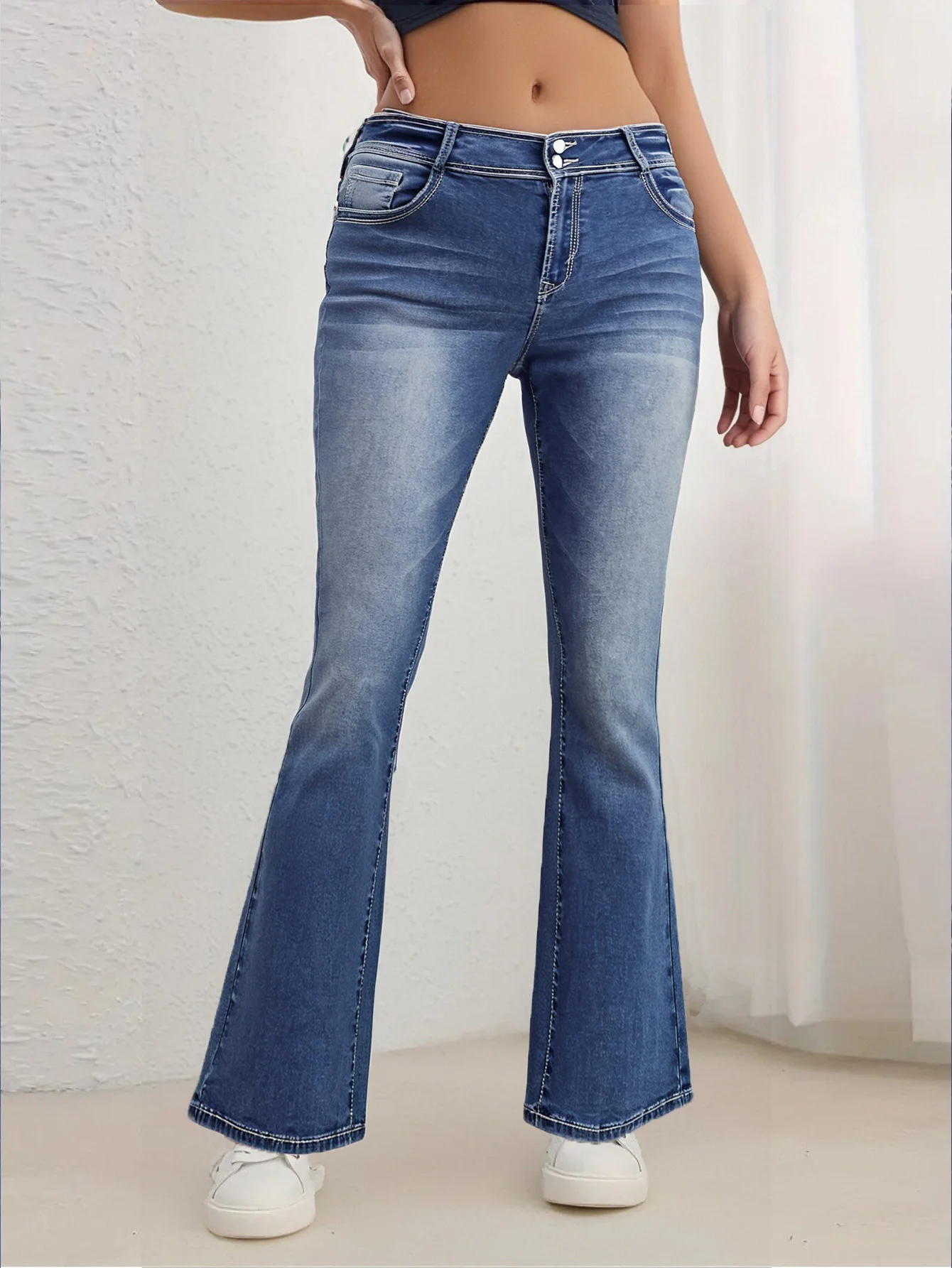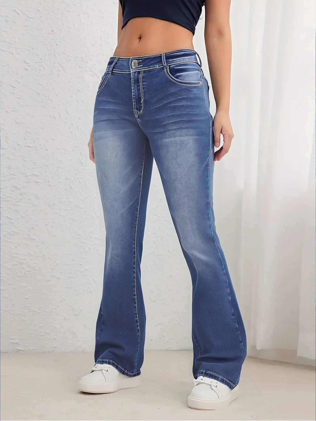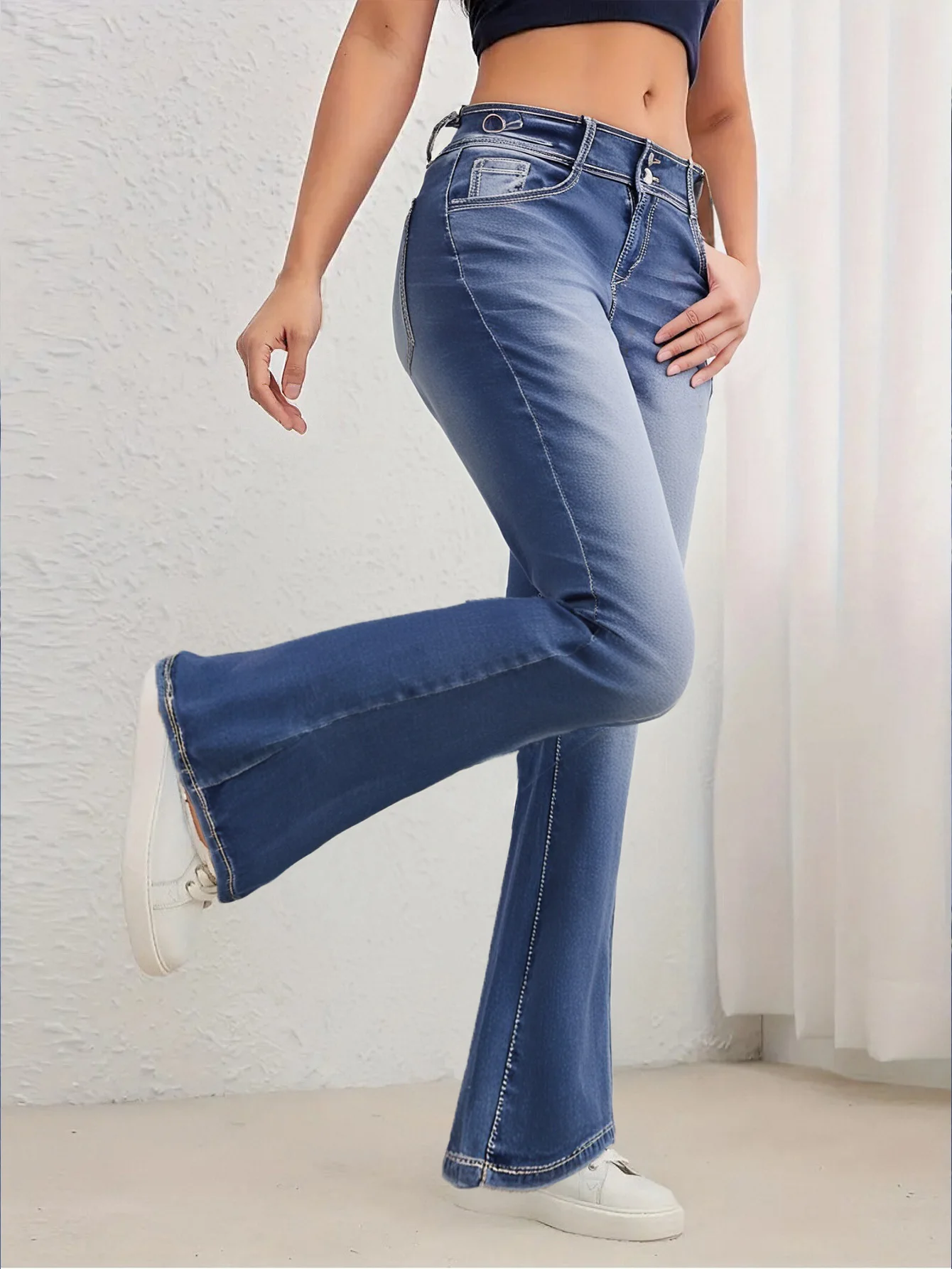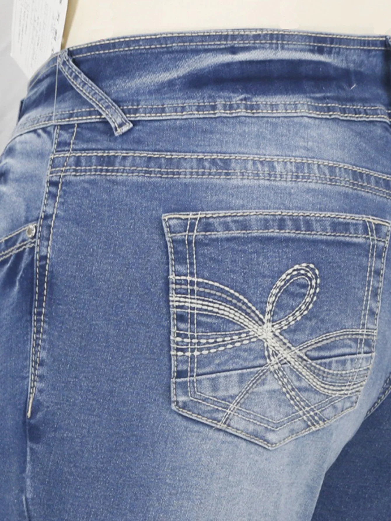 Women's Light Blue Flared Denim Jeans with Embroidered Back Pockets