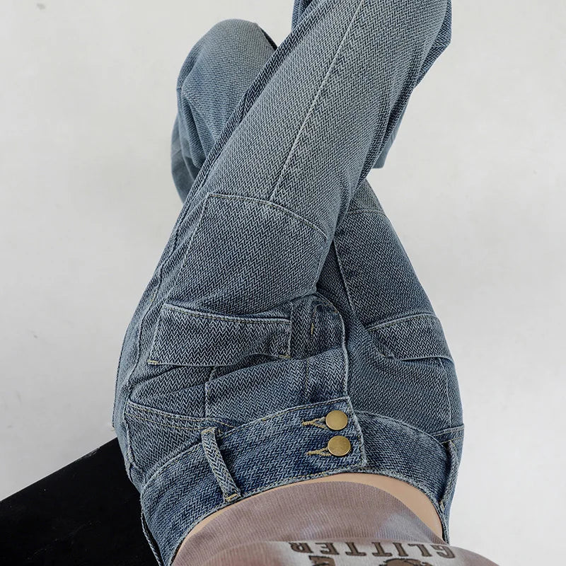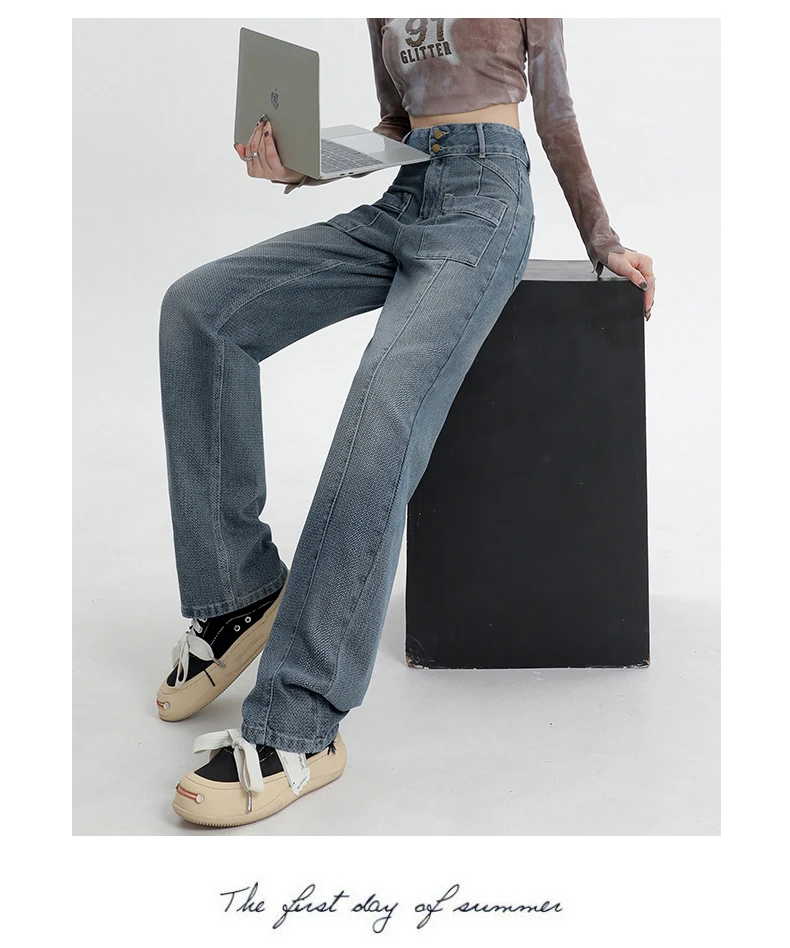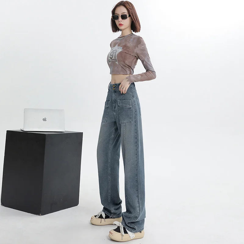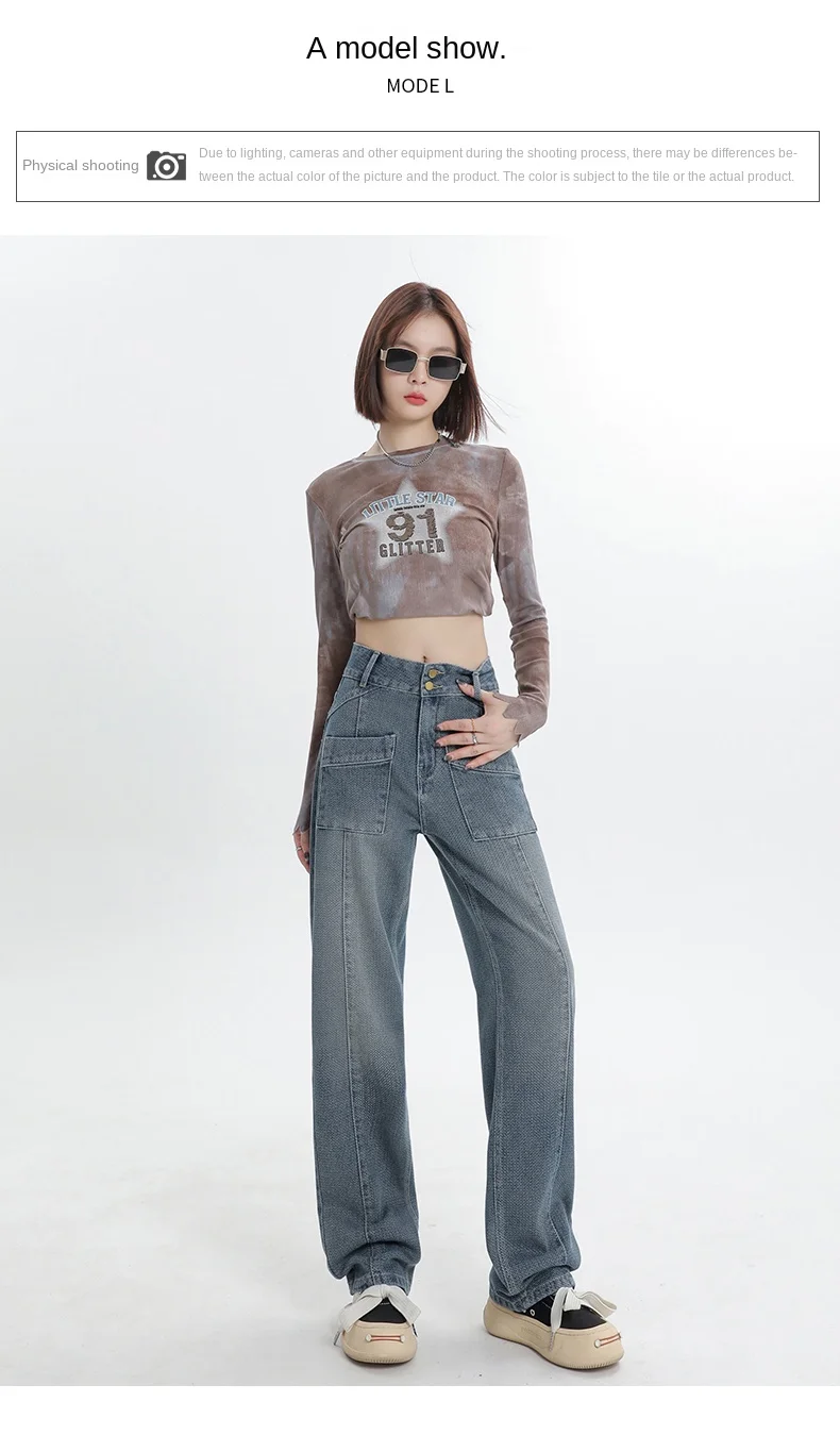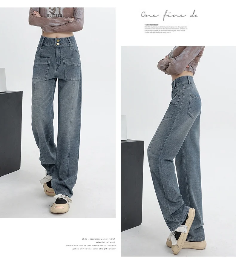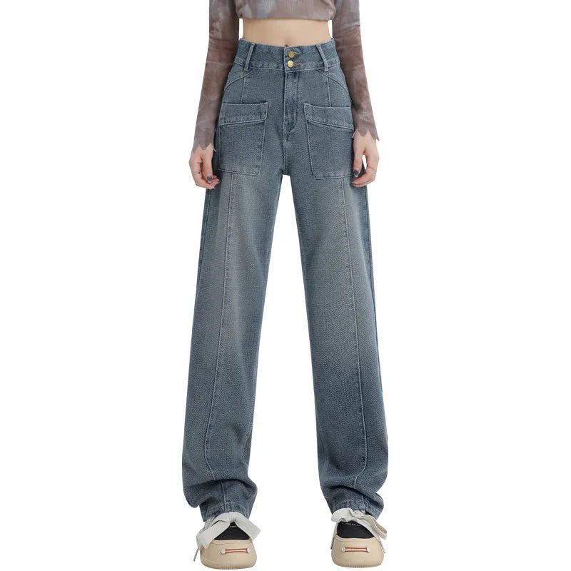 Womens Straight Jeans Leisure Comfortable Skin Friendly Low Waist Baggy Denim Trousers Vintage Punk Long Pants Street Fashion
